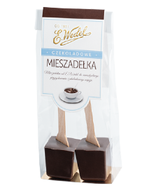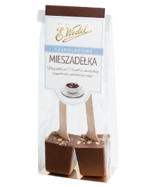 Klasyczne mieszadełka z czekolady mlecznej i gorzkiej do samodzielnego przygotowania pysznego czekoladowego napoju. Wystarczy zamieszać w gorącym mleku i obserwować jak czekolada się rozpuszcza. Dzieciom sprawią radość a dorosłym przypomną smak dzieciństwa.