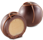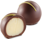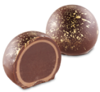 Aromatyczne intensywnie kawowo-czekoladowe nadzienie, zamknięte w skorupce z gorzkiej czekolady udekorowanej drobinkami czekolady mlecznej.