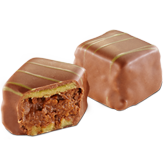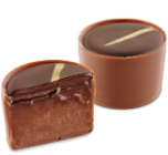 Rozpływające się w ustach nadzienie z czekolady karmelowej, ze słoną nutą, otoczone kakao.