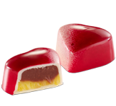 Czekoladowe, pikantne nadzienie o smaku chili w skorupce z czekolady gorzkiej i mlecznej z owocową posypką.